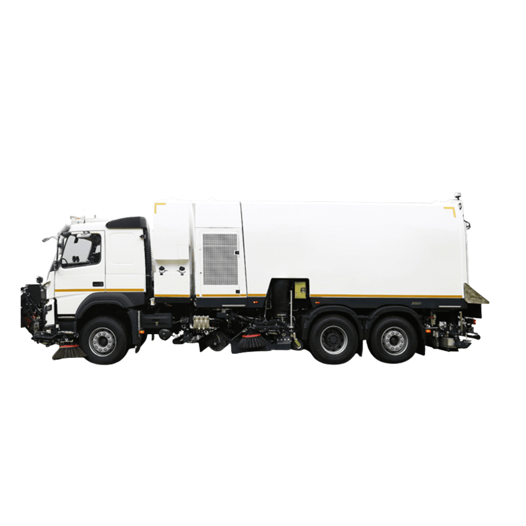 Med en sopbehållare på hela 12 m³ och en vattentank på 5 000 liter kombinerar VS12 maximal volym med robust konstruktion — idealisk för verksamheter som städar stora ytor, motorvägar och byggplatser.